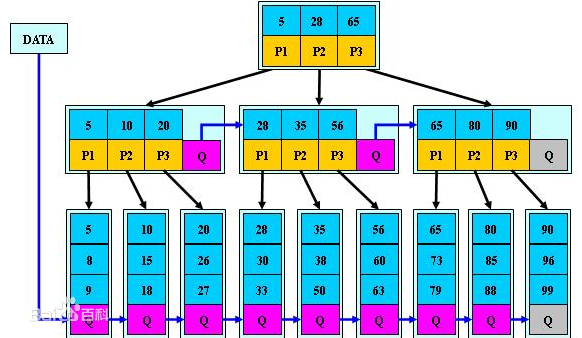 B+tree结构原型图大概如下(引用):